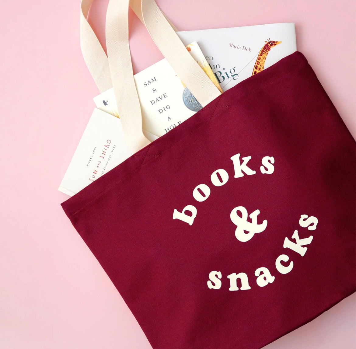 Books & Snacks - Burgundy Canvas Tote Bag