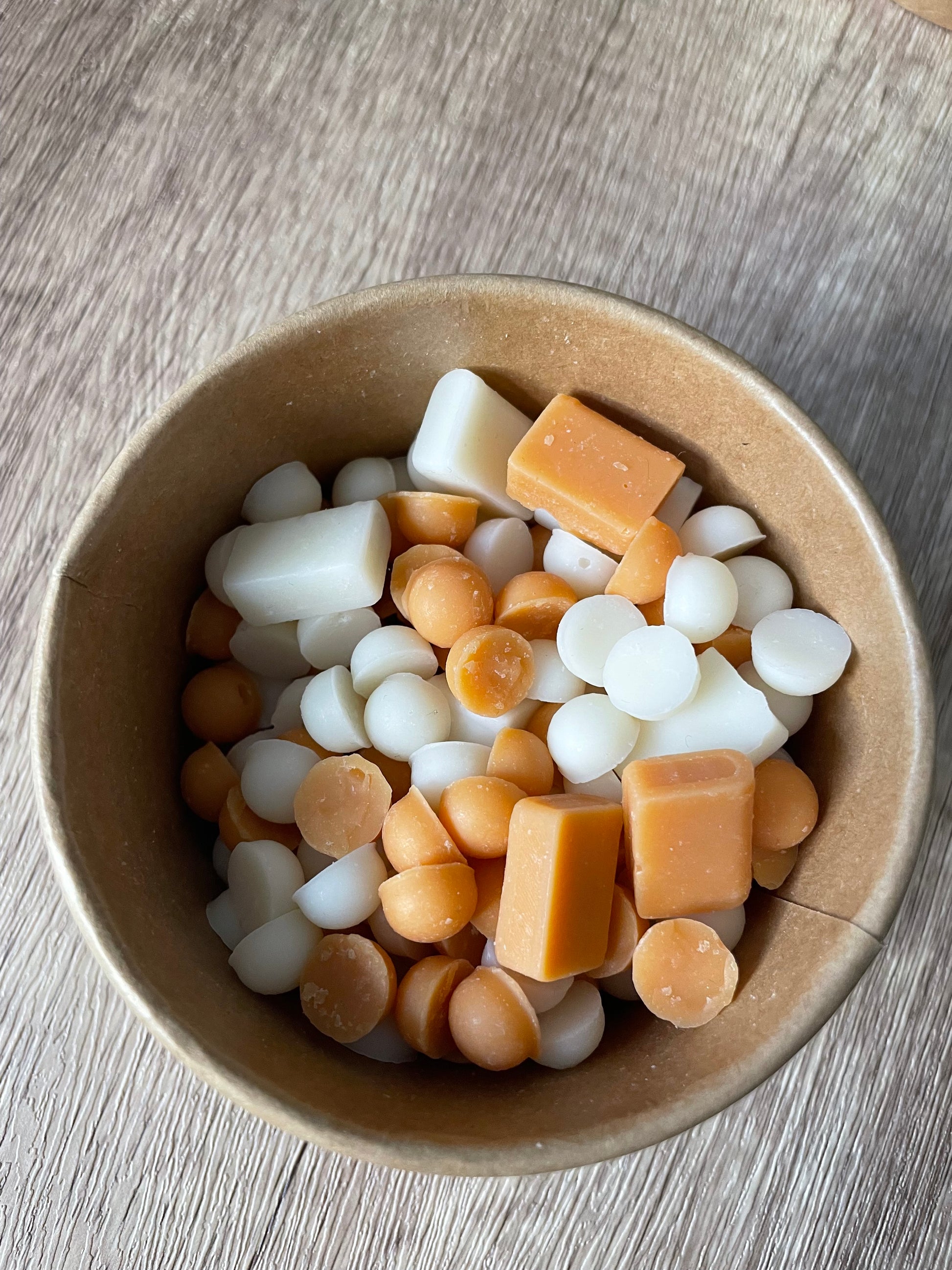 - 125g pot of mini wax melt books and dots. This is the equivalent of 2.5 wax melt blocks.