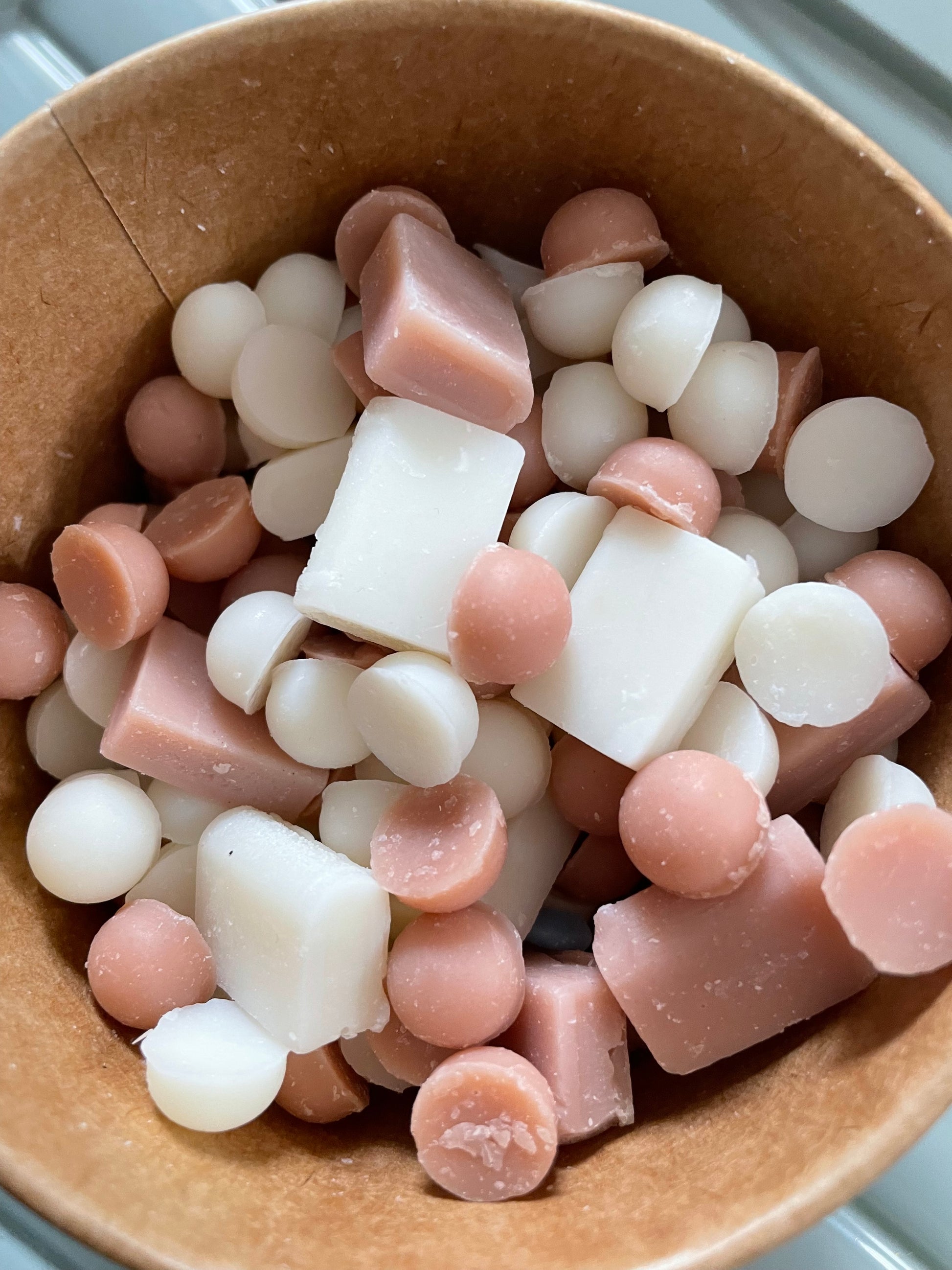 A 125g pot in the scent Labyrinth. This includes a variety of dots and mini book shaped wax melts.