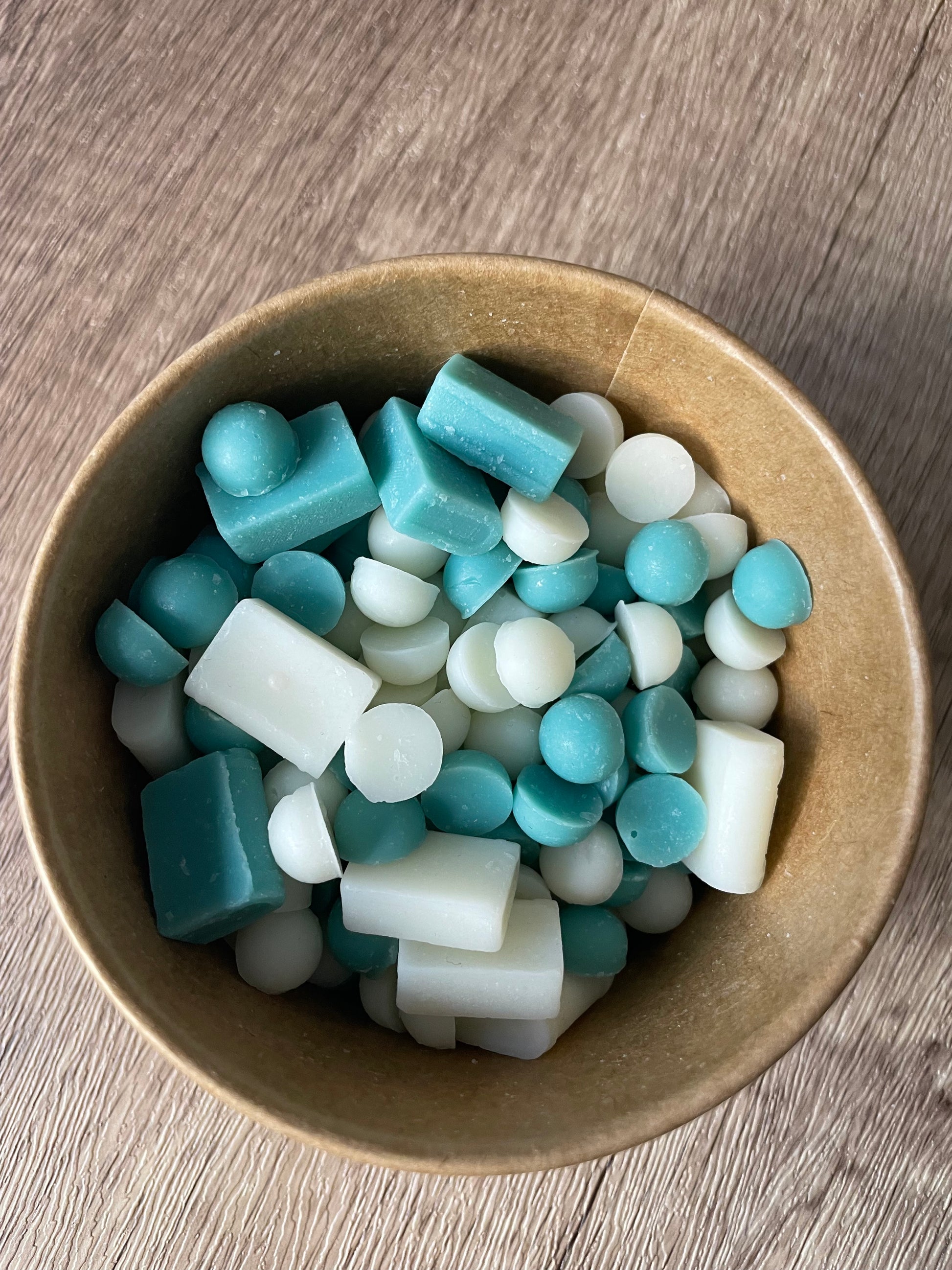 - 125g pot of mini wax melt books and dots. This is the equivalent of 2.5 wax melt blocks.
