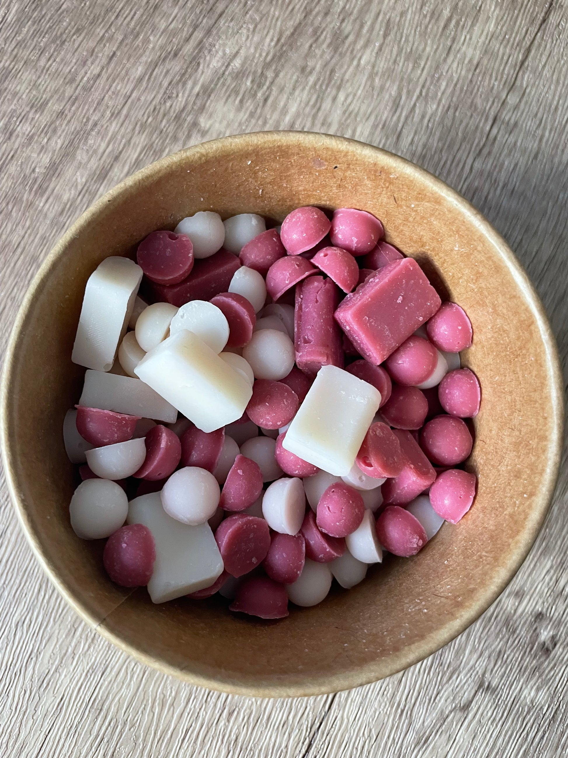 - 125g pot of mini wax melt books and dots. This is the equivalent of 2.5 wax melt blocks.