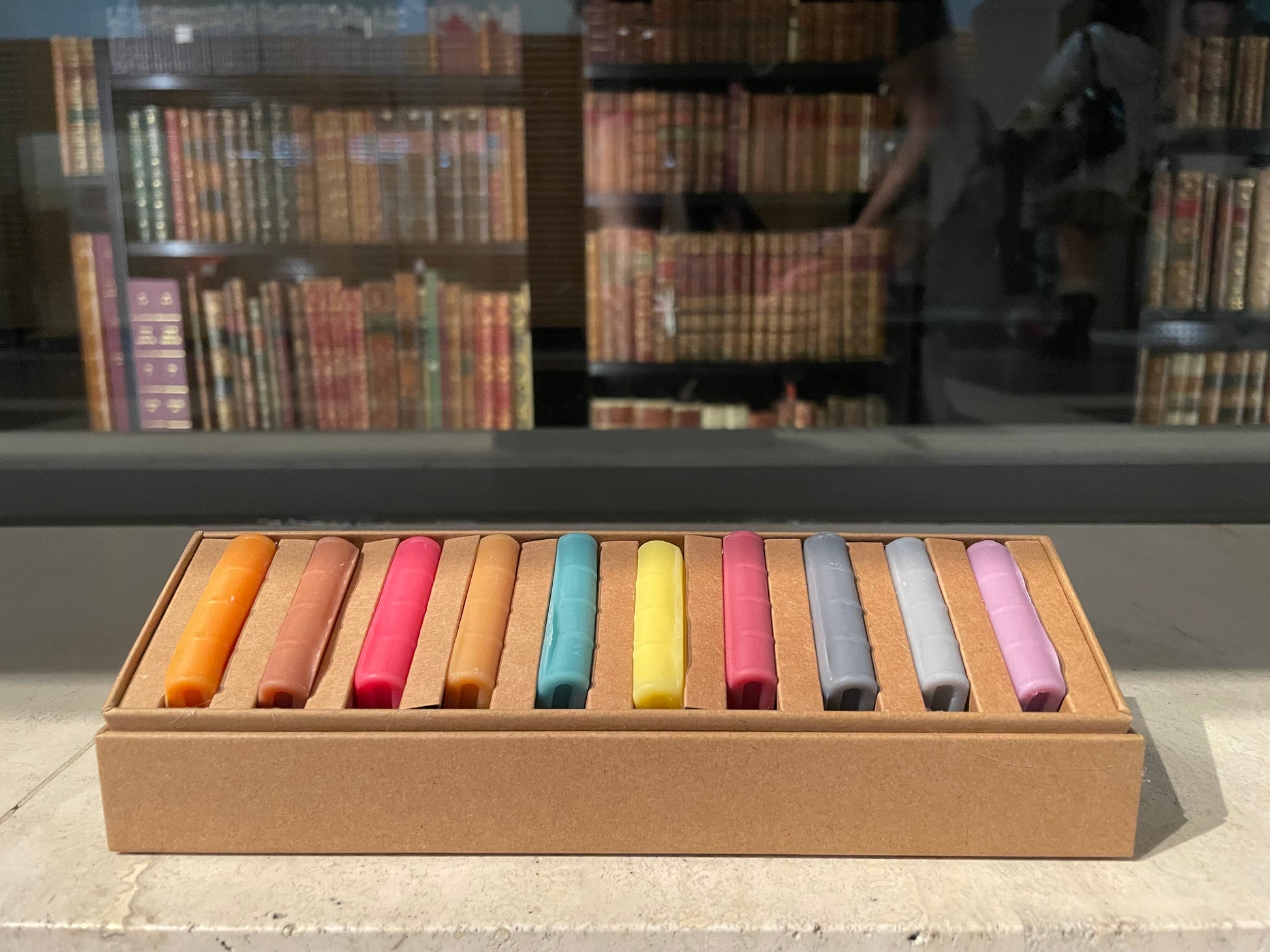 Please note that this item is fully handmade, including the packaging, and so there may be a difference in the colour of the wax melts to the image shown or some very minor imperfections. We take a huge amount of care in this product and this will still be a beautiful addition to your bookcase.