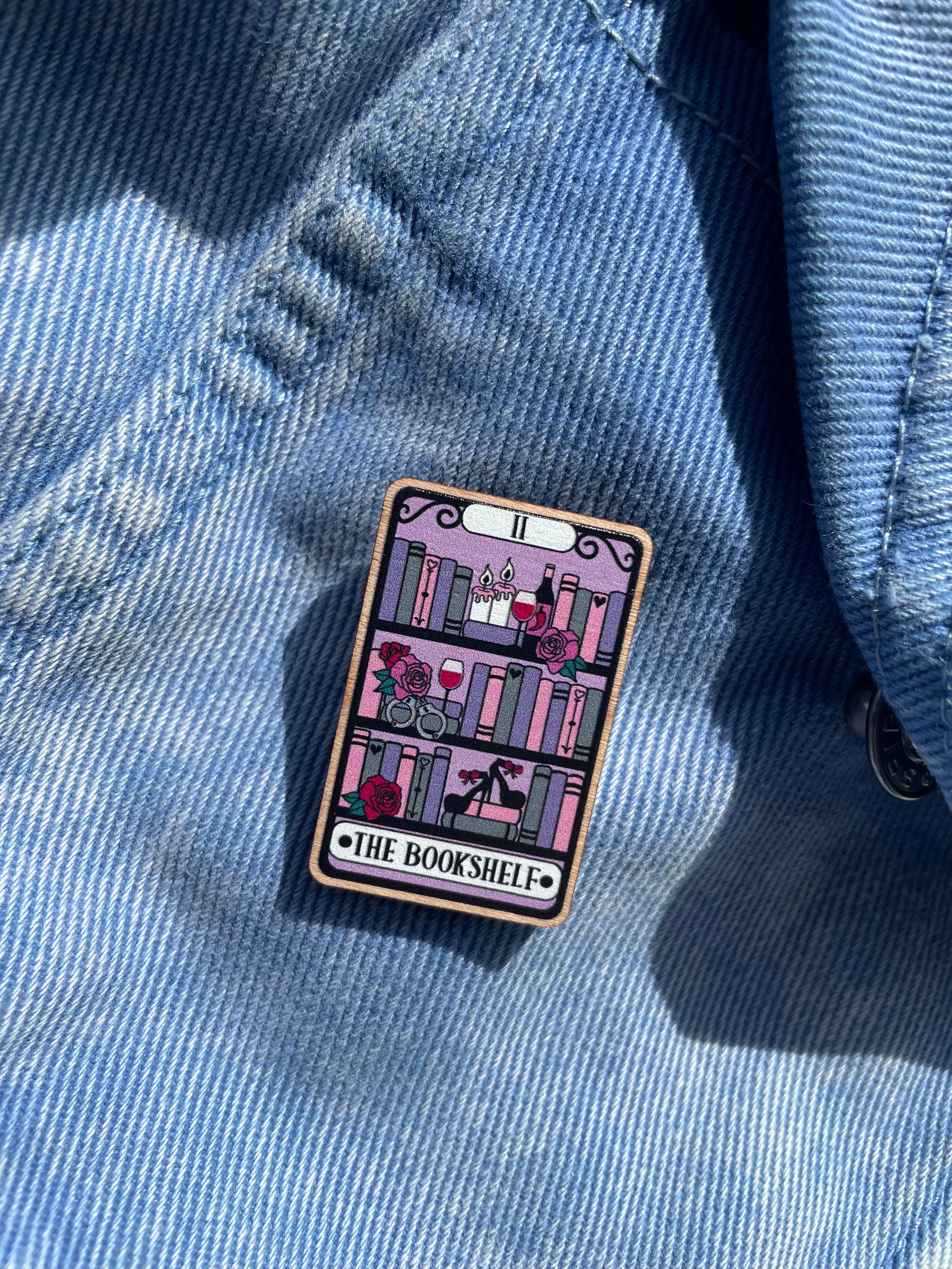 The Romance Bookshelf - Wooden Pin Badge