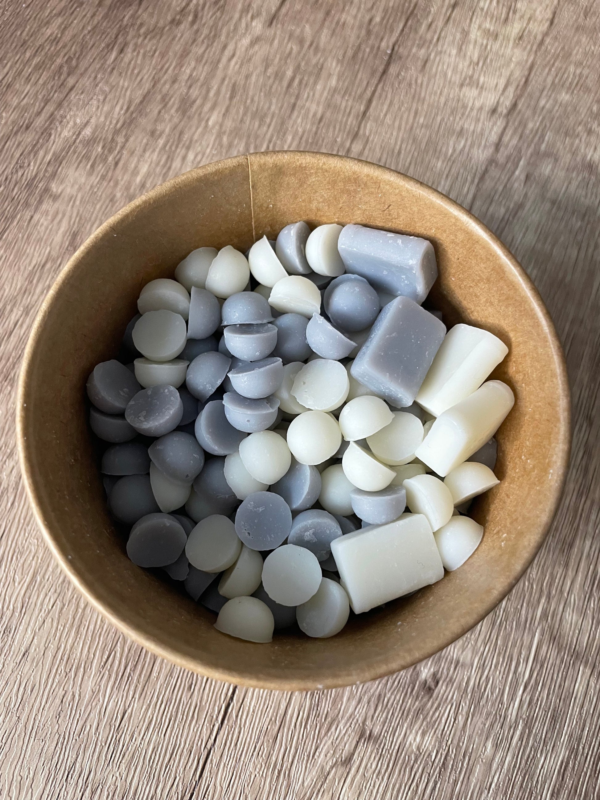 - 125g pot of mini wax melt books and dots. This is the equivalent of 2.5 wax melt blocks.